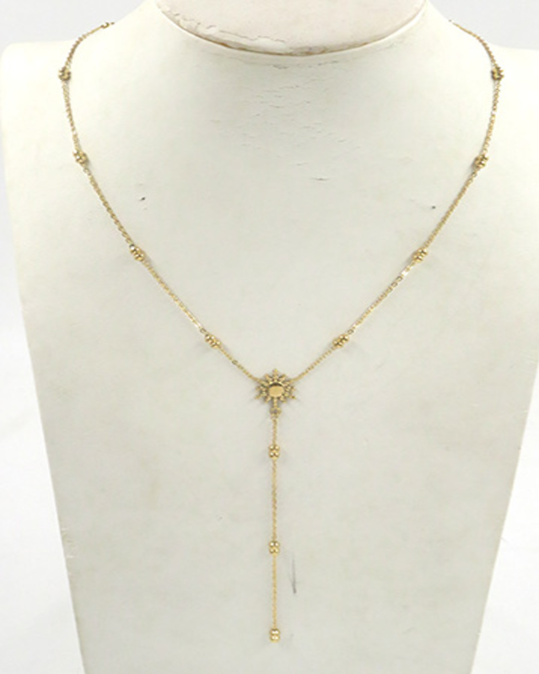 Medel besticht durch ihr sonnenförmiges Zentrum und den zarten, herabfallenden Anhänger. Ein leichtes, edles Schmuckstück,...