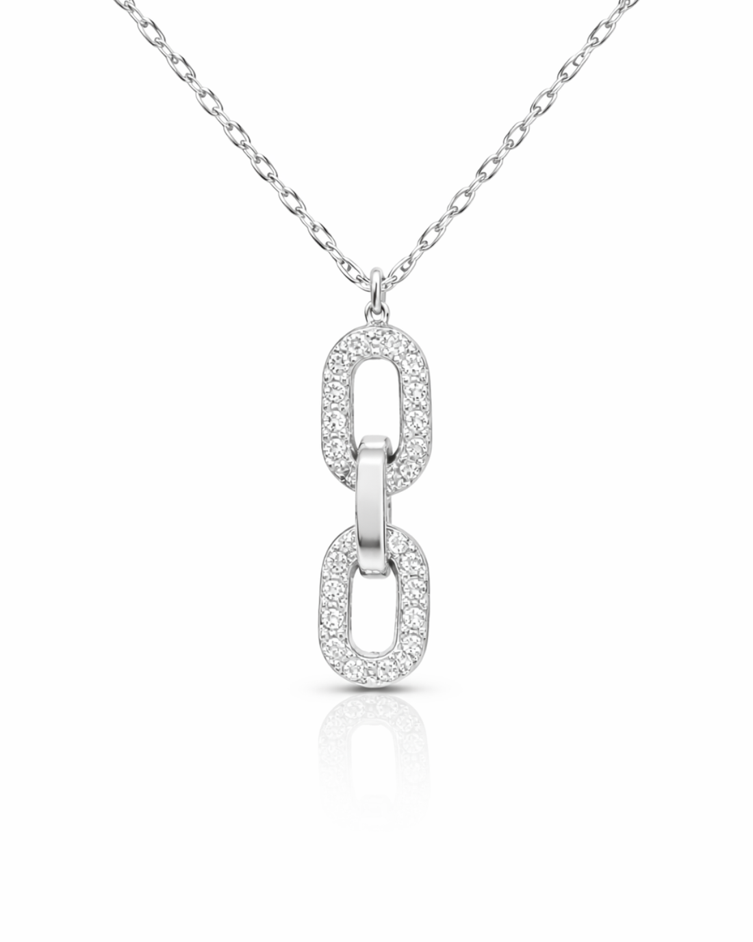 Amira überzeugt durch ihr modernes Doppelglied-Design mit feinem Glanz.Der Anhänger besteht aus zwei ineinander verbundenen Gliedern,...