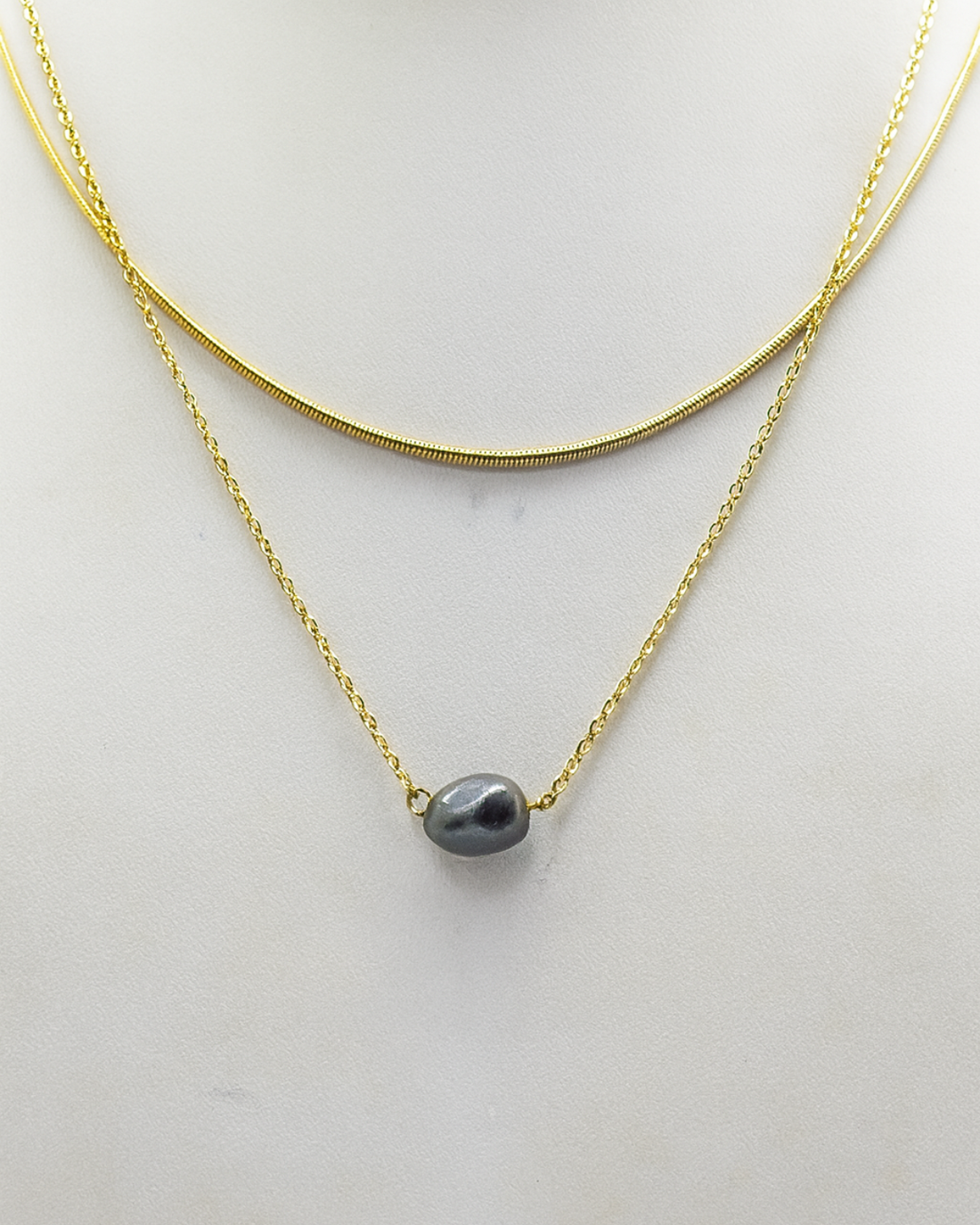 Diese zweireihige Halskette vereint eine feine Schlangenkette mit einer filigranen Gliederkette, die jeweils einen natürlichen...