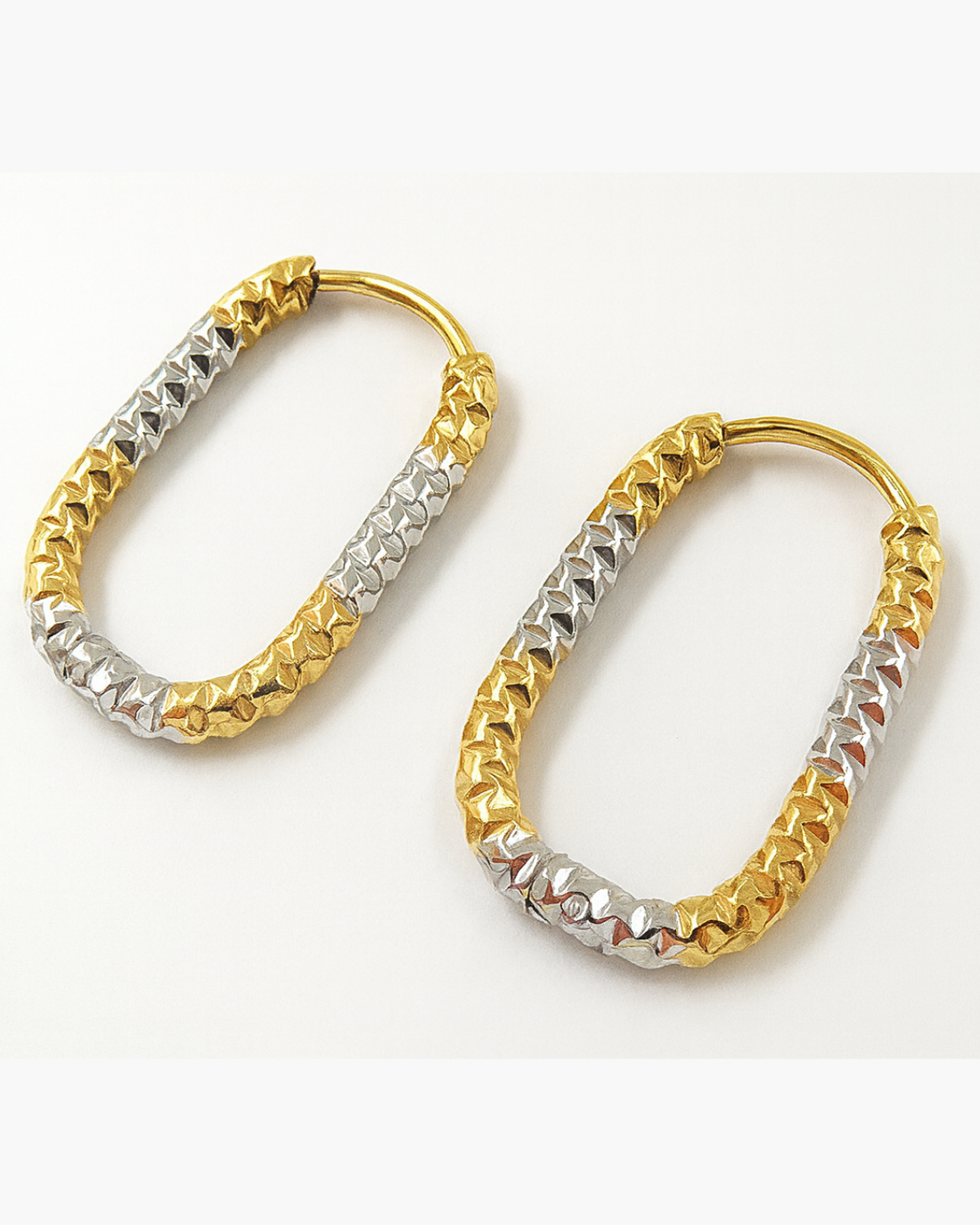 Die Moza Ohrringe vereinen Gold- und Silberoptik in einem stilvollen, geometrischen Look. Die markante, facettierte...