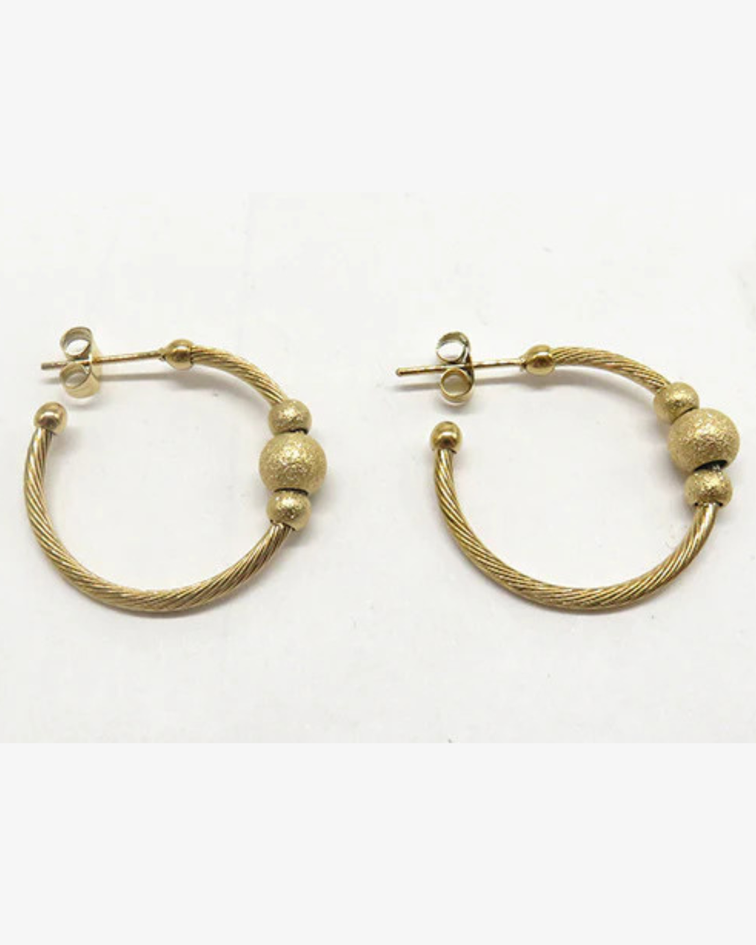 Ului vereint moderne Raffinesse mit einem Hauch Vintage-Charme. Die gedrehten Edelstahl-Hoops werden durch strukturierte Kugel-Details...