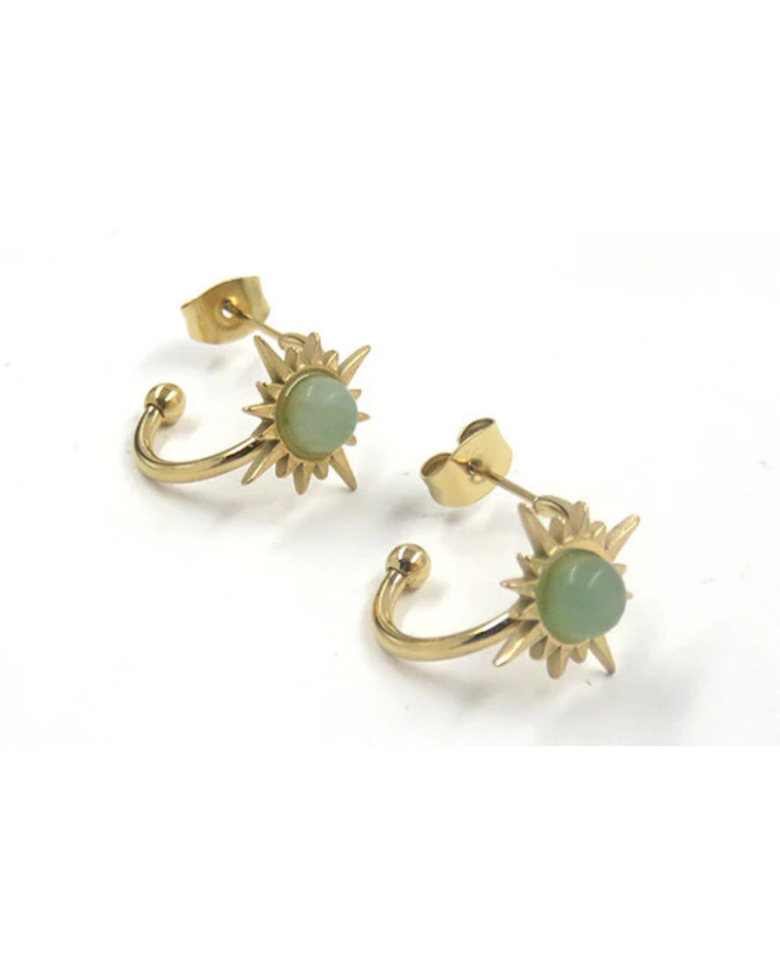 Die Flora Ohrringe vereinen zarte Verspieltheit mit modernem Design. Der sonnenförmige Anhänger mit sanft grünem...