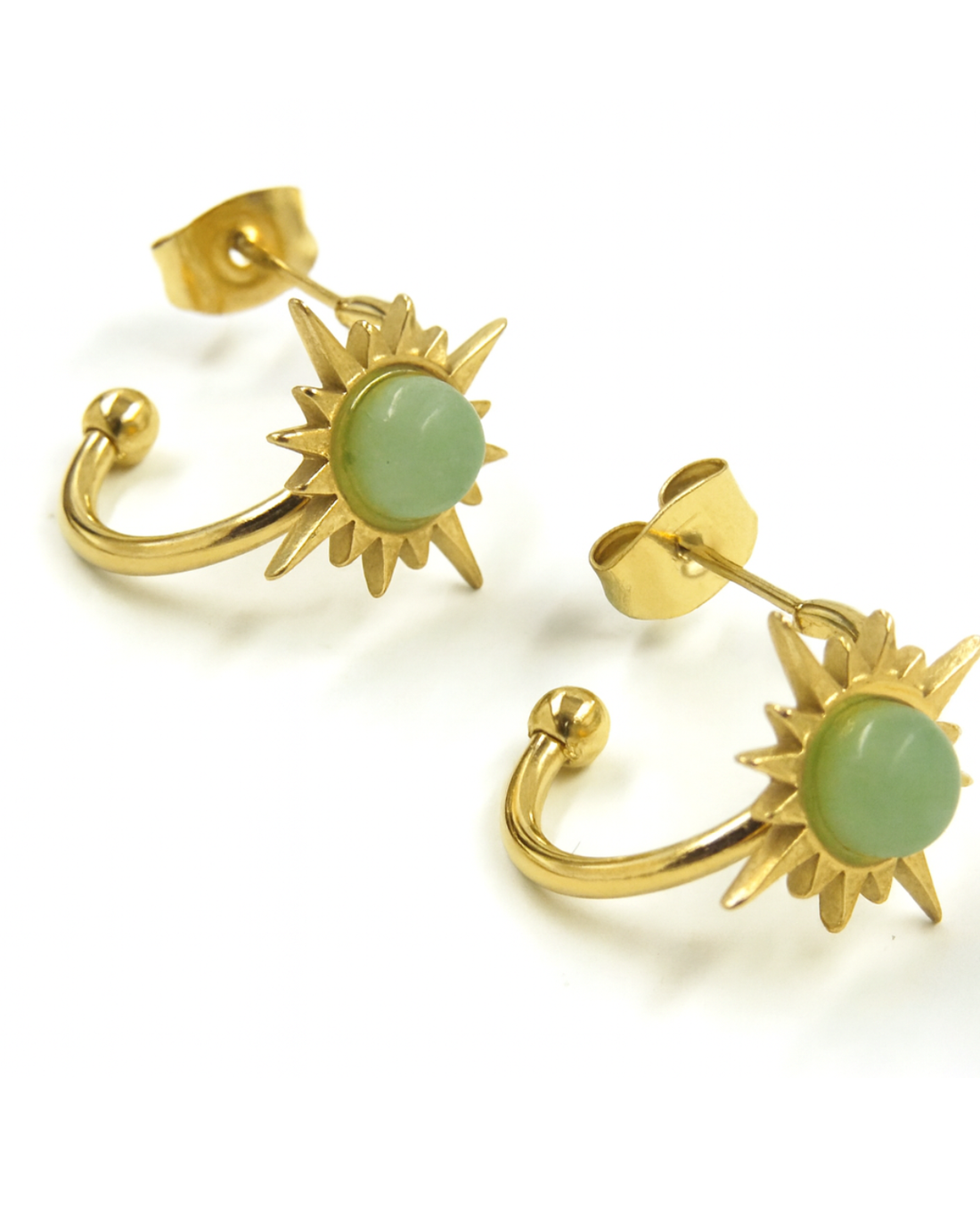 Die Flora Ohrringe vereinen zarte Verspieltheit mit modernem Design. Der sonnenförmige Anhänger mit sanft grünem...