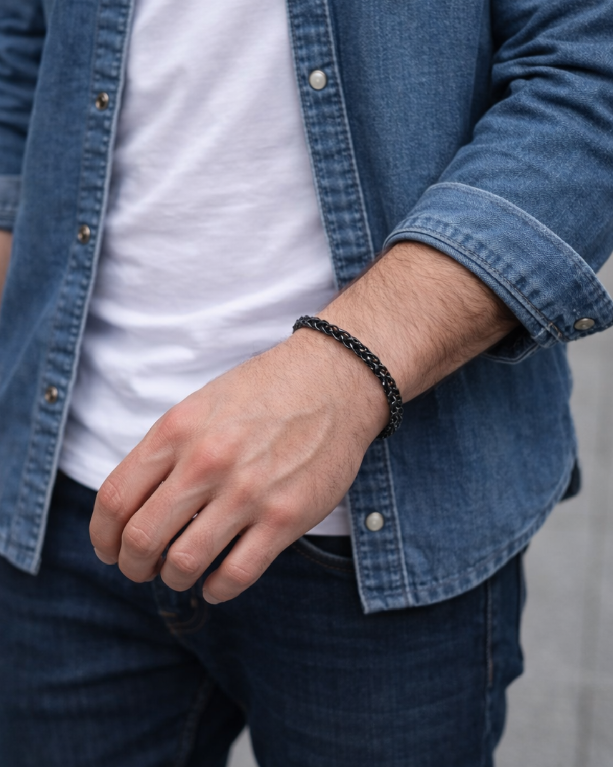Caji überzeugt mit seiner dunkel beschichteten, eng verflochtenen Kettenstruktur – modern, markant und stilvoll zugleich. Hergestellt aus hochwertigem Edelstahl, bietet es eine robuste Qualität, angenehmen Tragekomfort und einen zeitgemäßen, maskulinen Look. Perfekt für alle, die dezente Eleganz mit einem Hauch von Edge suchen.