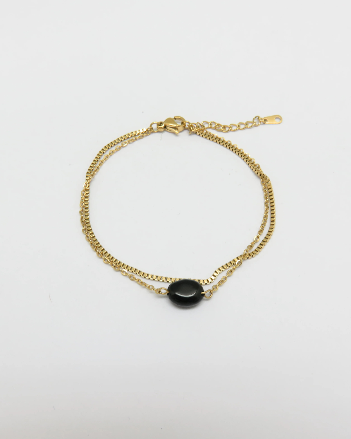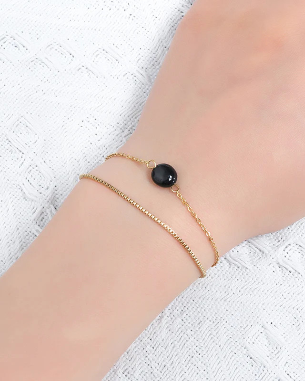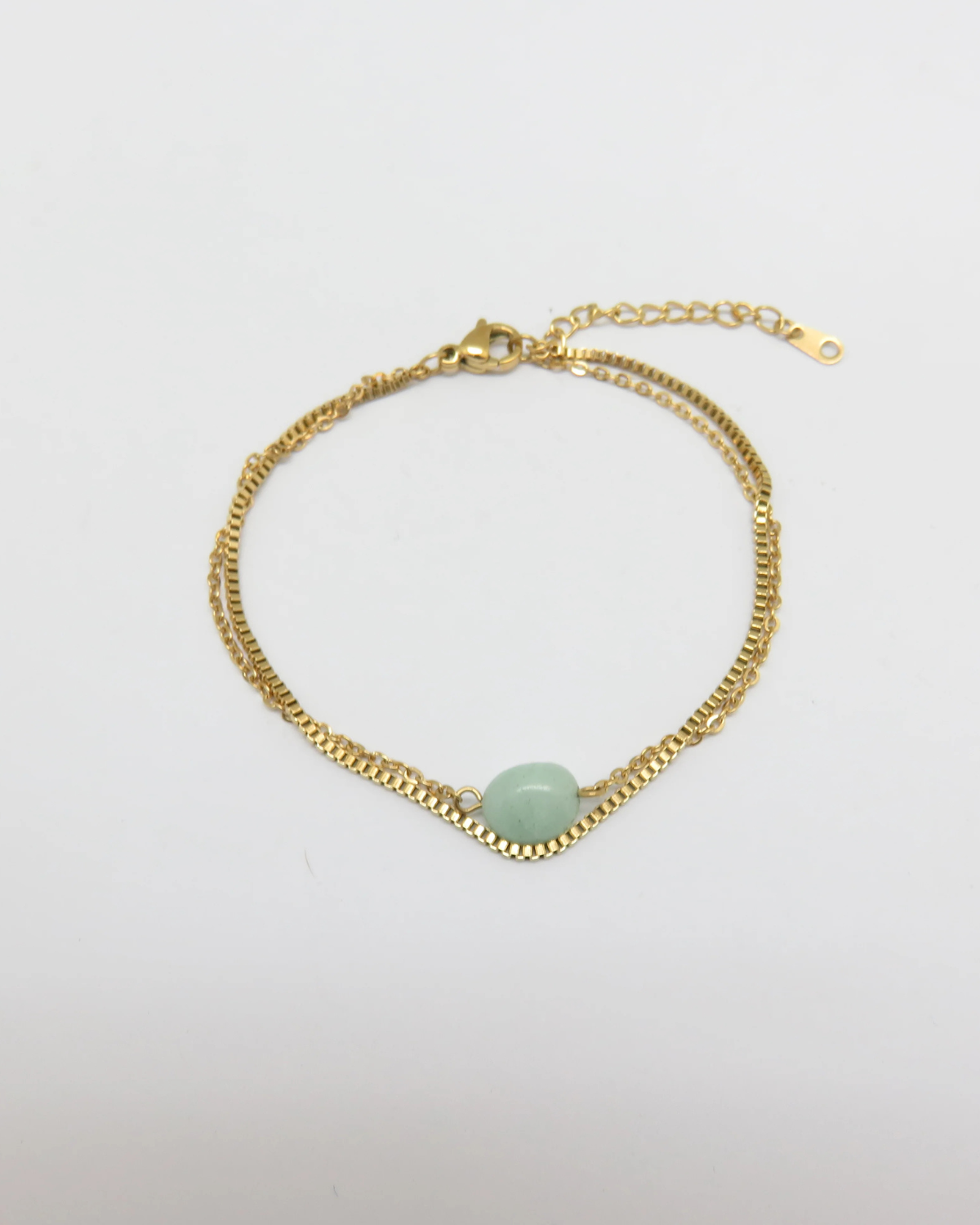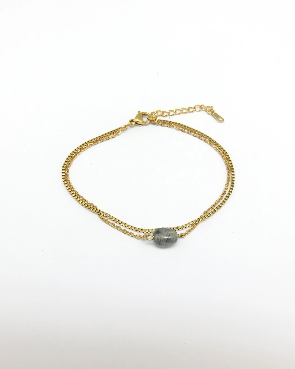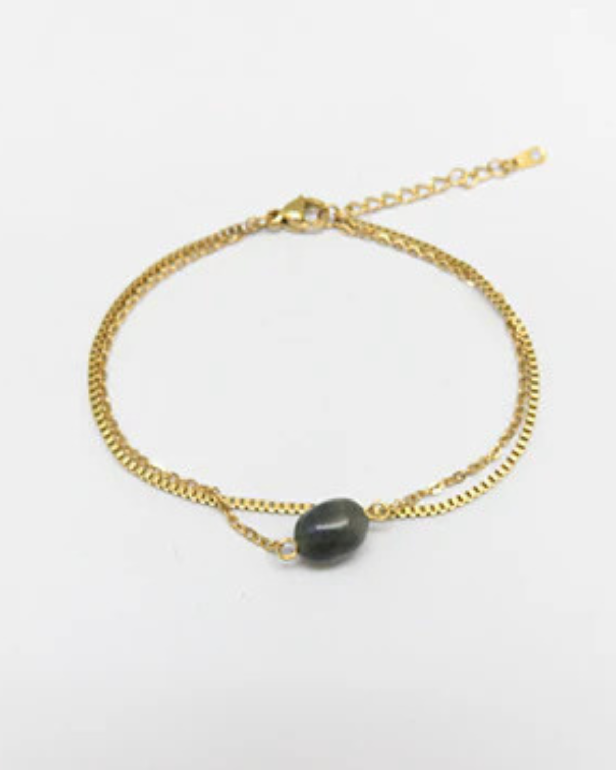 Farina vereint zeitlose Schlichtheit mit einem Hauch von natürlicher Schönheit. Zwei feine Edelstahl-Ketten legen sich sanft ums Handgelenk, während ein glatter Naturstein in der Mitte dezent hervorstrahlt. Das Armband ist leicht, minimalistisch und dennoch ein echter Blickfang – perfekt zum täglichen Tragen oder als feiner Akzent in deinen Layering-Looks.