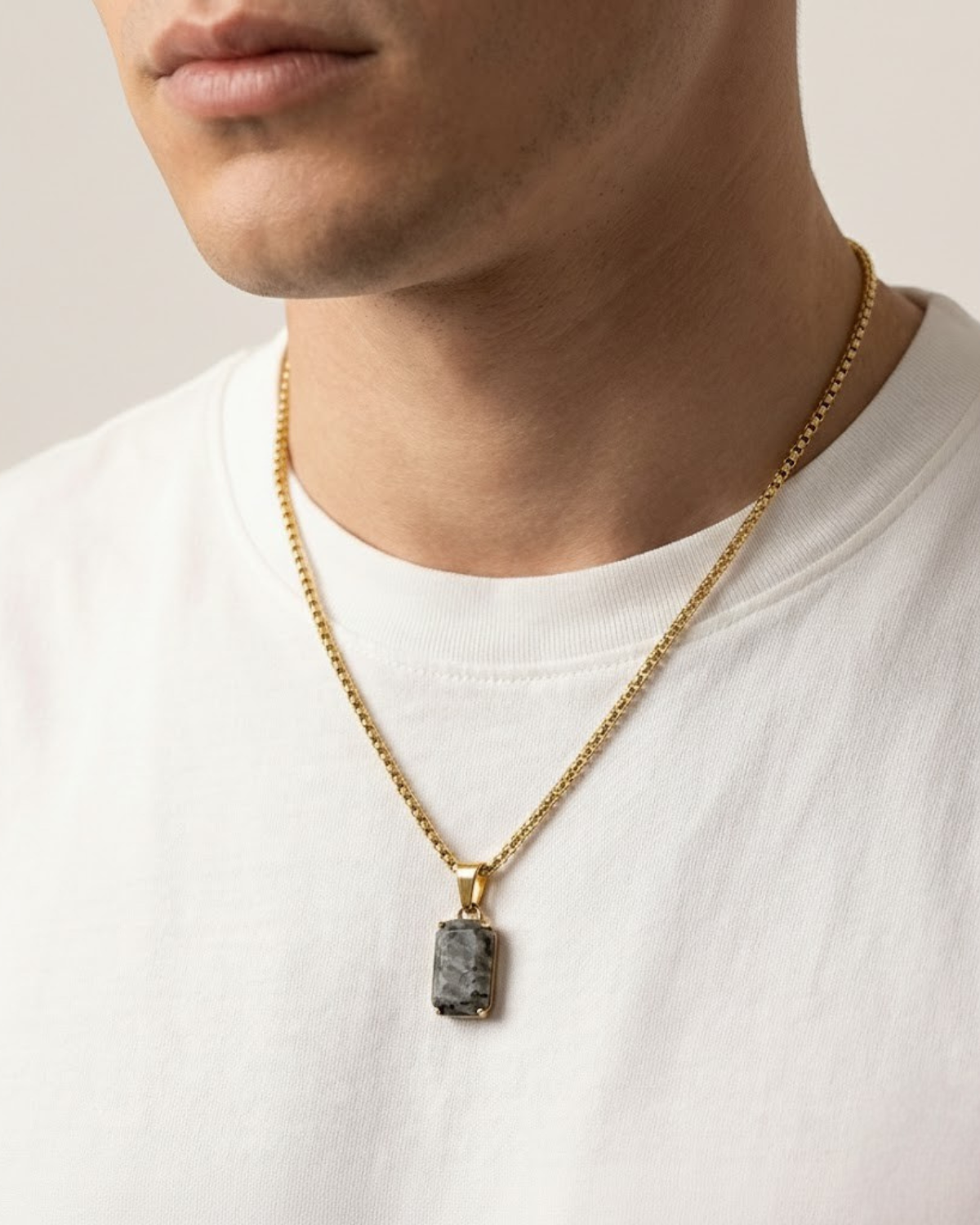 Fes beeindruckt mit einem rechteckigen, facettierten Anhänger im Naturstein-Look, der jedem Outfit eine markante, elegante Note verleiht. Die natürliche Maserung macht jedes Stück zu einem Unikat. Gefertigt aus hochwertigem Edelstahl bleibt die Kette langlebig, farbstabil und angenehm zu tragen.