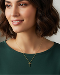 Masot - Eine feine Kreuzkette aus hochwertigem 925 Sterling Silber, vergoldet für einen edlen Glanz. Das minimalistische Design macht Masot zum perfekten täglichen Begleiter – dezent, stilvoll und voller Symbolkraft. Ideal zum Layern oder solo ein echter Klassiker.