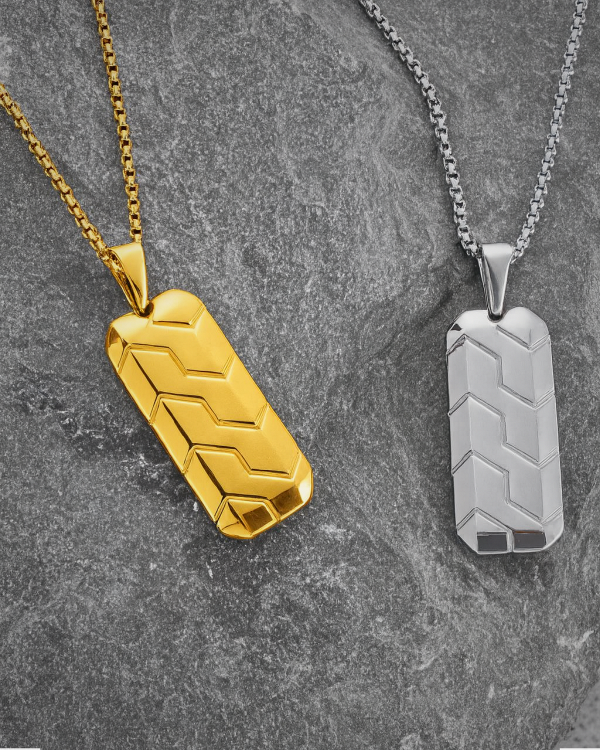 Meknes überzeugt mit einem markanten, geometrisch strukturierten Anhänger, der jeden Look sofort aufwertet. Das klare Design wirkt modern und kraftvoll zugleich und macht die Kette zu einem vielseitigen Accessoire für Alltag und besondere Anlässe. Gefertigt aus hochwertigem Edelstahl bleibt sie robust, farbstabil und angenehm zu tragen.