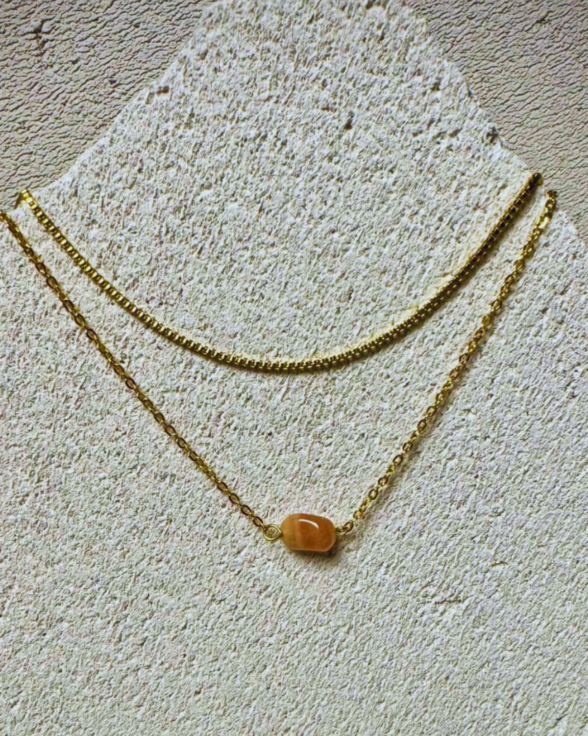 Diese zweireihige Halskette vereint eine feine Schlangenkette mit einer filigranen Gliederkette, die jeweils einen natürlichen Edelstein tragen. Gefertigt aus hochwertigem Edelstahl, bleibt Victoria langlebig, farbstabil und hautfreundlich – perfekt für den täglichen Look oder besondere Anlässe.