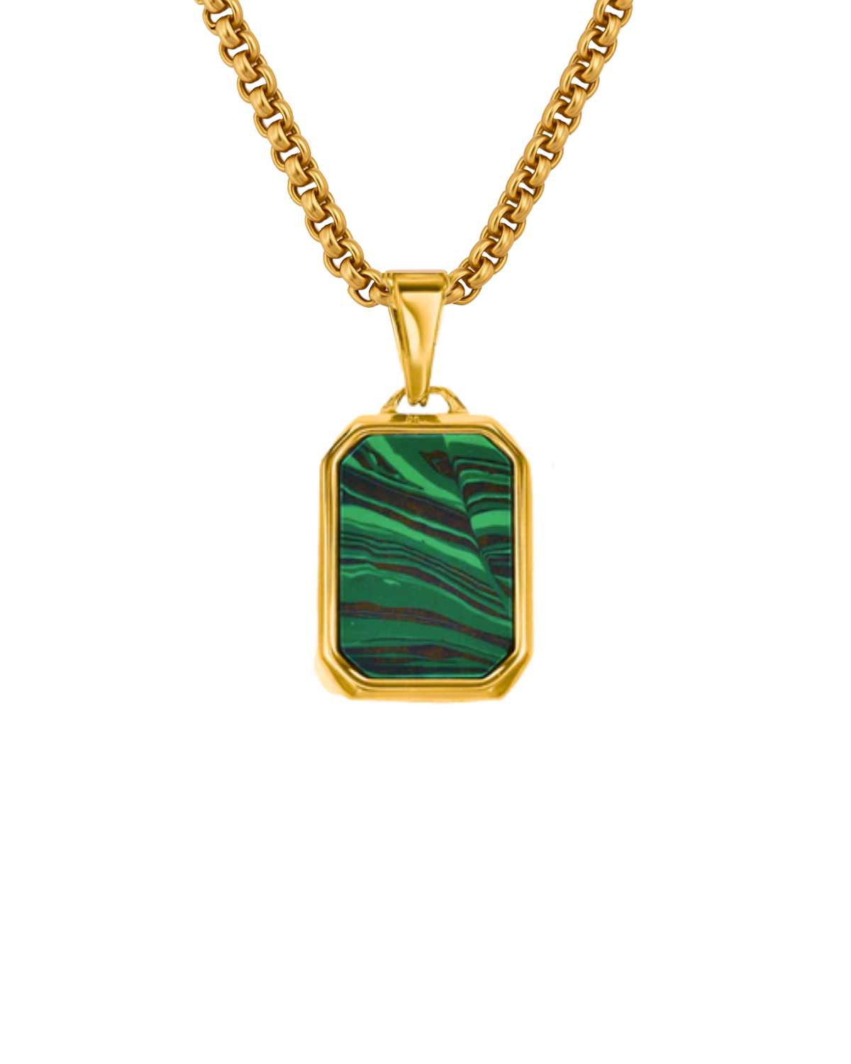 Zagora kombiniert modernen Edelstahlglanz mit einem auffälligen, grünen Stein im Malachit-Look. Der kantige Anhänger verleiht dem Schmuckstück eine edle, charakterstarke Note und macht es zum perfekten Highlight für jeden Look. Langlebig, farbbeständig und stilvoll – ein Statement für Männer, die außergewöhnliche Details lieben.