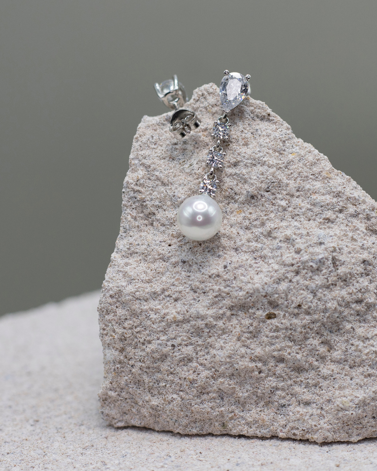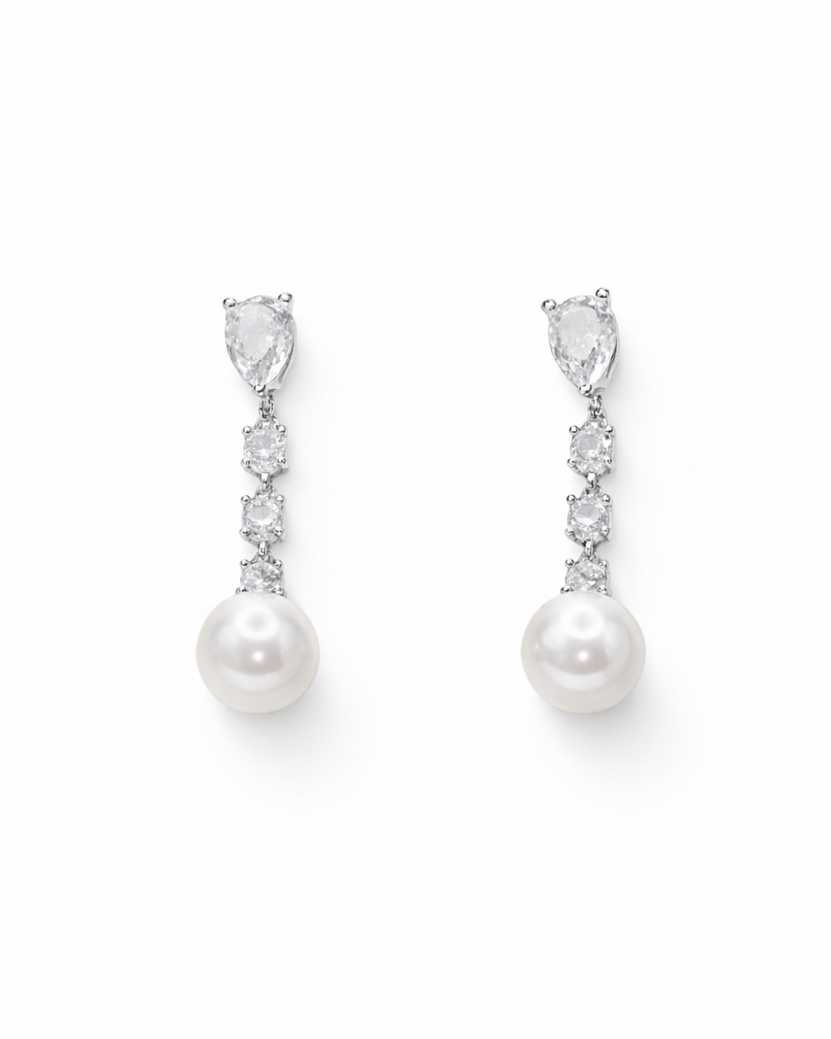 Isabella- Diese eleganten Ohrringe aus 925 Sterling Silber sind mit funkelnden Zirkonia-Steinen und einer edlen Perle verziert. Das feminine Design kombiniert klassische Eleganz mit modernem Glanz – ideal für festliche Anlässe oder stilvolle Alltagsmomente.