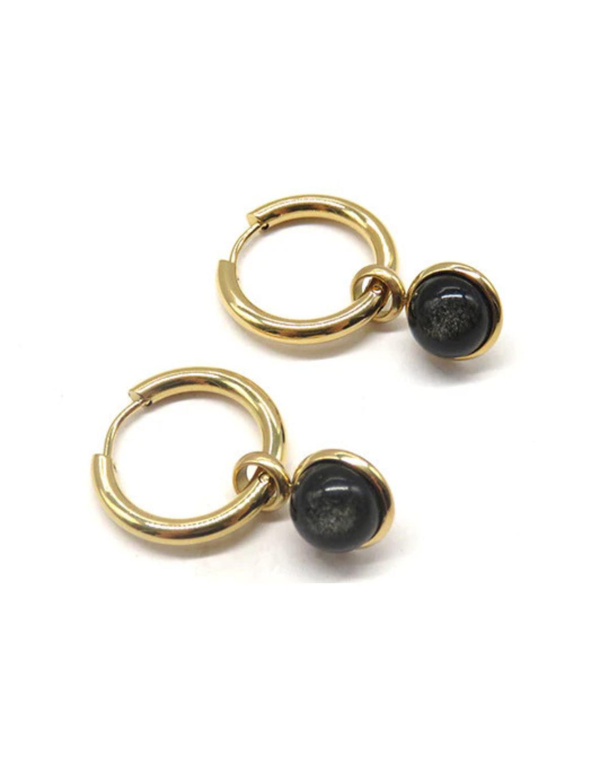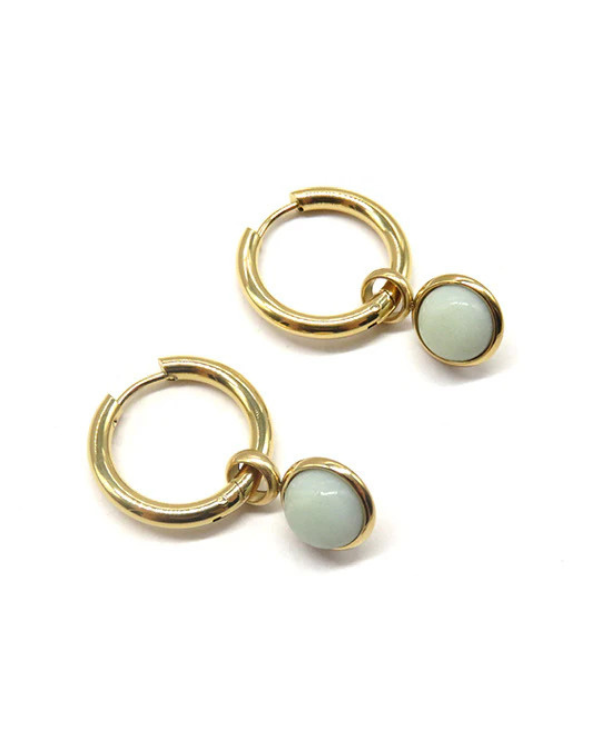 Die Aroona Ohrringe kombinieren schlichte Eleganz mit einem natürlichen Highlight: Zarte Edelstahl-Kreolen, veredelt mit einem runden Steinanhänger, der jedem Look einen sanften Farbakzent verleiht. Langlebig, modern und perfekt für den Alltag wie für besondere Anlässe.