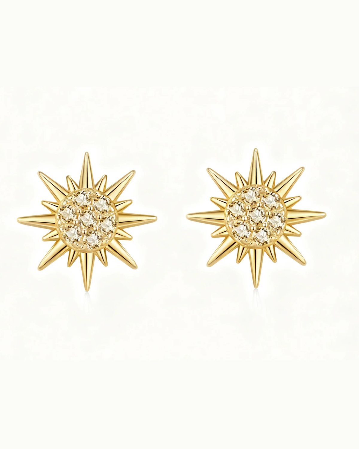 Clarendon - Diese funkelnden Ohrstecker aus 925 Sterling Silber setzen mit ihrem sonnenförmigen Design und glitzernden Zirkonia-Akzenten ein leuchtendes Highlight. Leicht, modern und edel – perfekt, um jedem Look einen Hauch von Strahlkraft zu verleihen.