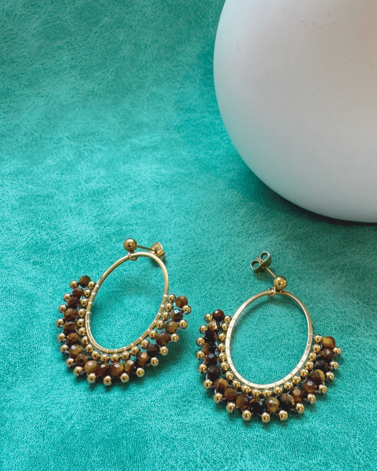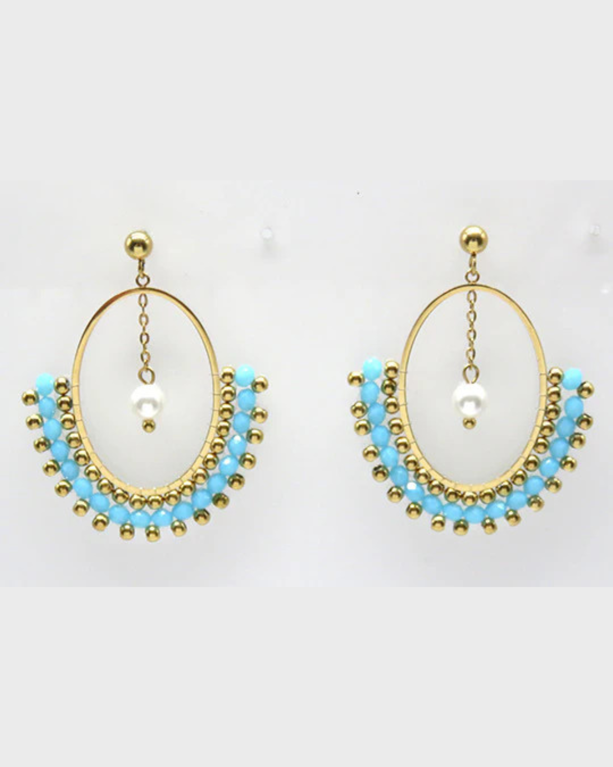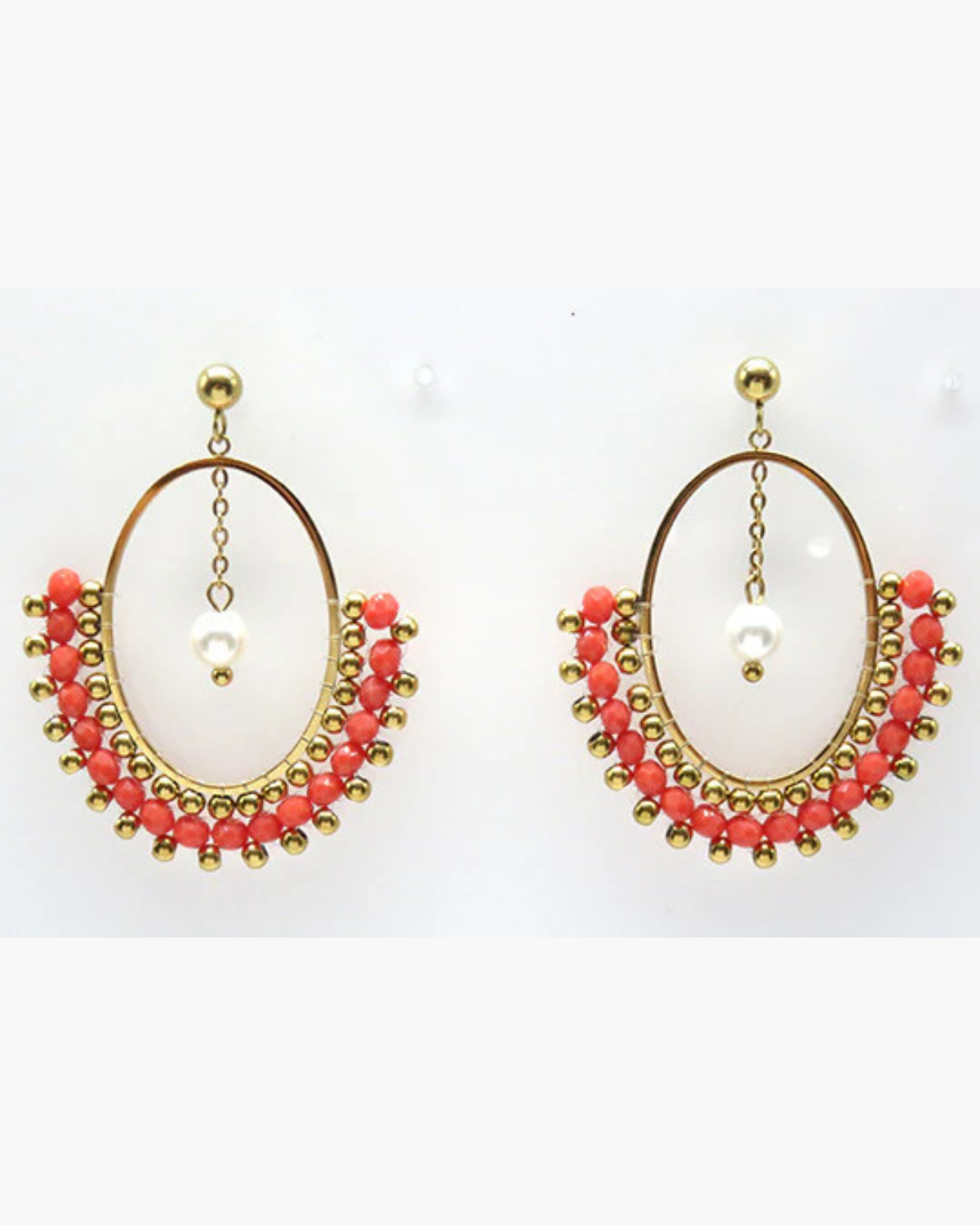 Diese besonderen Ohrhänger aus hochwertigem Edelstahl vereinen lebendige Farbakzente mit elegantem Perlendetail. Das halbrunde Design mit funkelnden Beads macht Corinda zum idealen Statement-Schmuckstück – leicht, modern und perfekt für jeden Anlass.