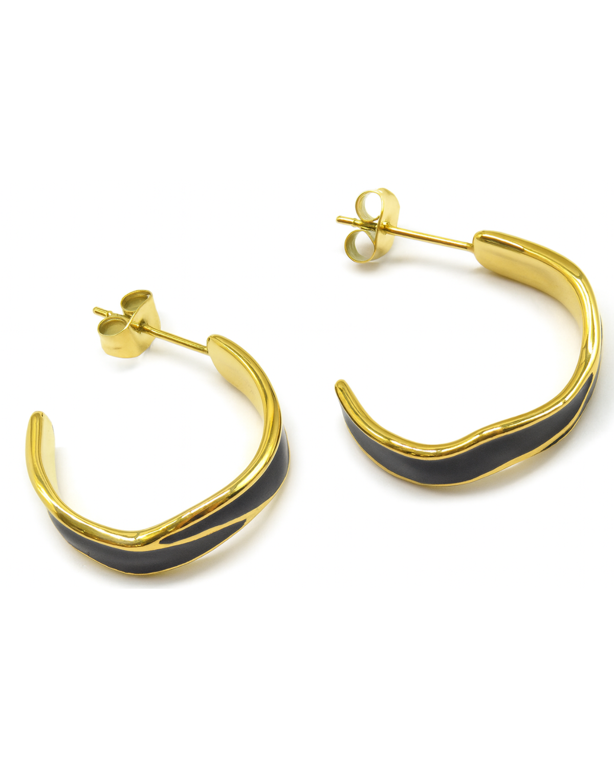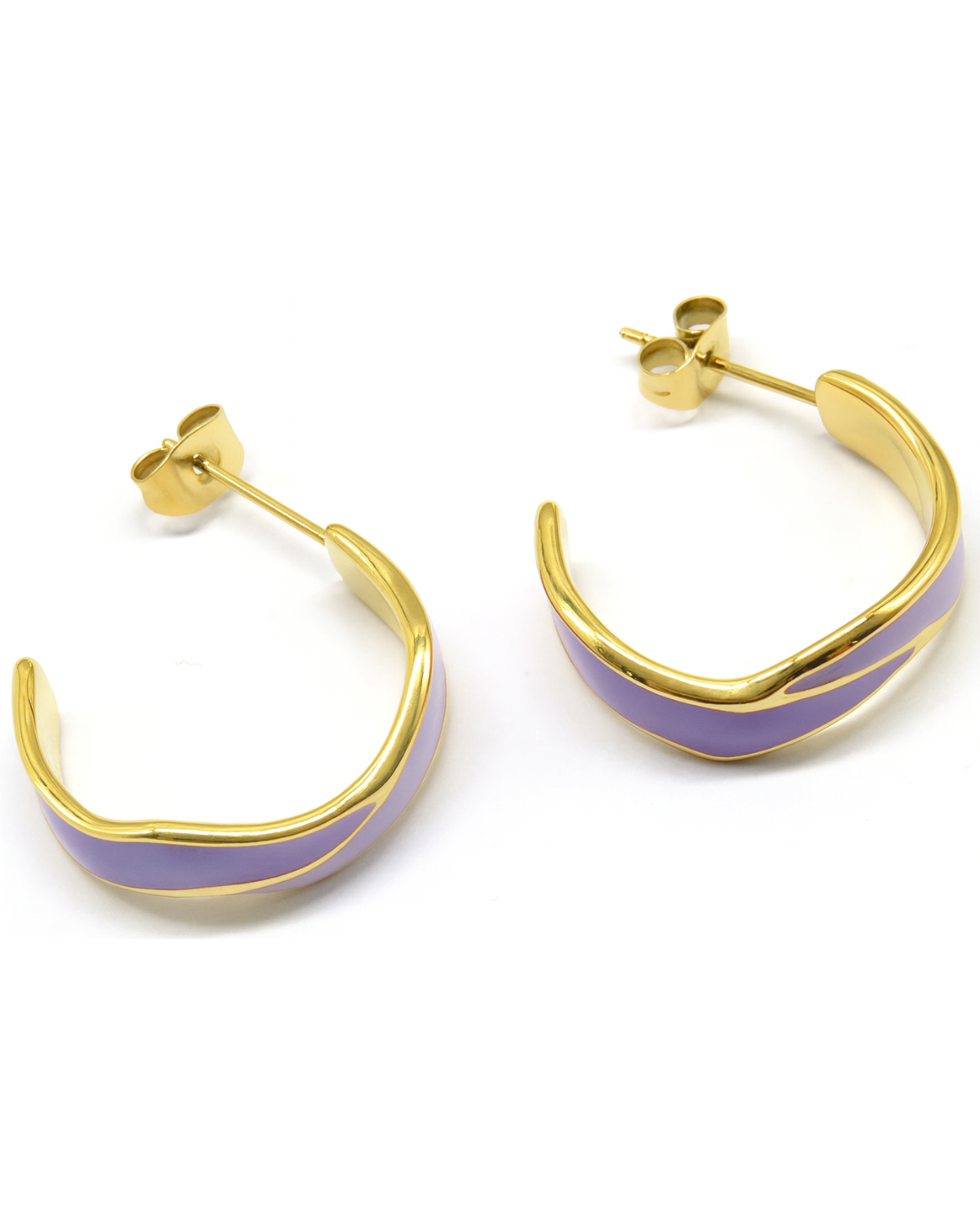 Die Mabel Ohrringe kombinieren ein sanft gewelltes Design mit farbiger Emaille und glänzendem Edelstahl. Der Mix aus klaren Linien und fließender Form schafft einen stilvollen, femininen Look – perfekt für den Alltag und besondere Anlässe. Leicht, modern und ein echter Hingucker.