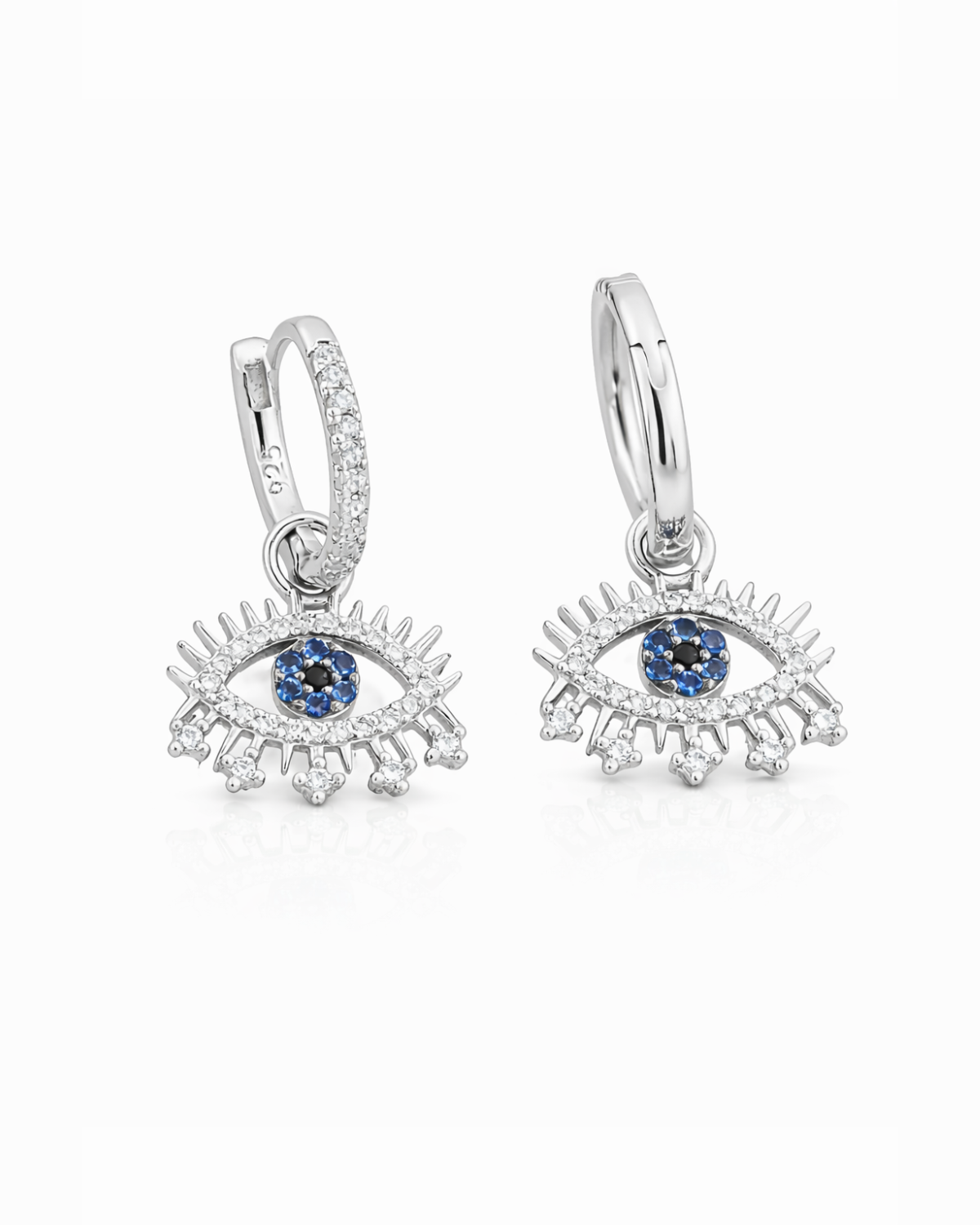 Noura vereint edles Design mit symbolischer Bedeutung. Das Evil Eye Motiv (Schutzauge) steht seit Jahrhunderten für Schutz, Glück und positive Energie. Die funkelnden Zirkonia-Steine in Blau und Weiß verleihen dem Set einen modernen, luxuriösen Look – ein stilvolles Statement mit spiritueller Tiefe.