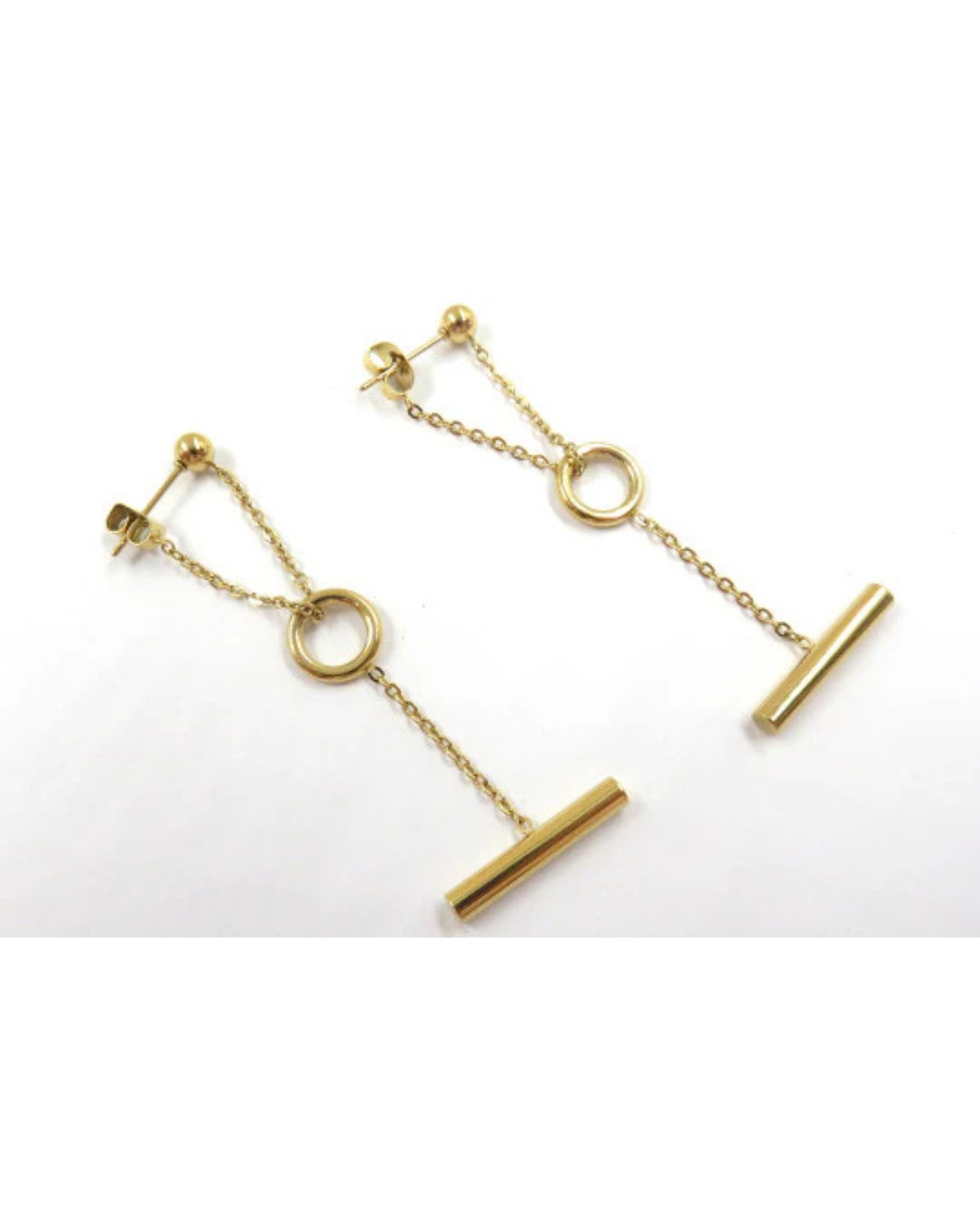 Yamba setzt auf klare Linien und minimalistischen Glamour. Die Kombination aus feiner Kette, modernem Ring-Detail und elegantem Stab-Anhänger macht diese Edelstahl-Ohrhänger zu einem echten Highlight. Leicht, stilvoll und vielseitig – perfekt für alle, die schlichte Eleganz lieben.