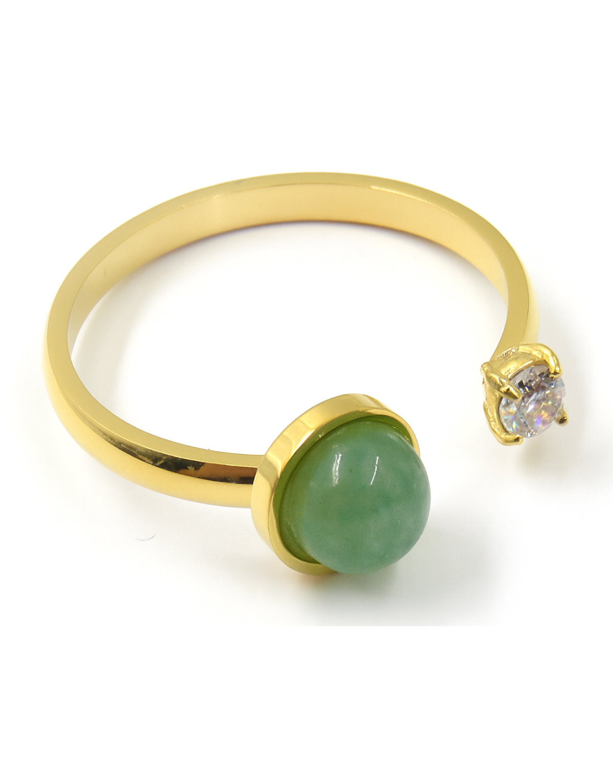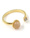Sora verbindet zarte Eleganz mit einem modernen Twist. Zwei Highlights – ein runder Naturstein und ein funkelnder Zirkonia – treffen auf edlen, vergoldeten Edelstahl und schaffen ein harmonisches, feminines Design. Leicht verstellbar und in verschiedenen Steinfarben erhältlich, ist Sora ein stilvoller Akzent für jeden Anlass.