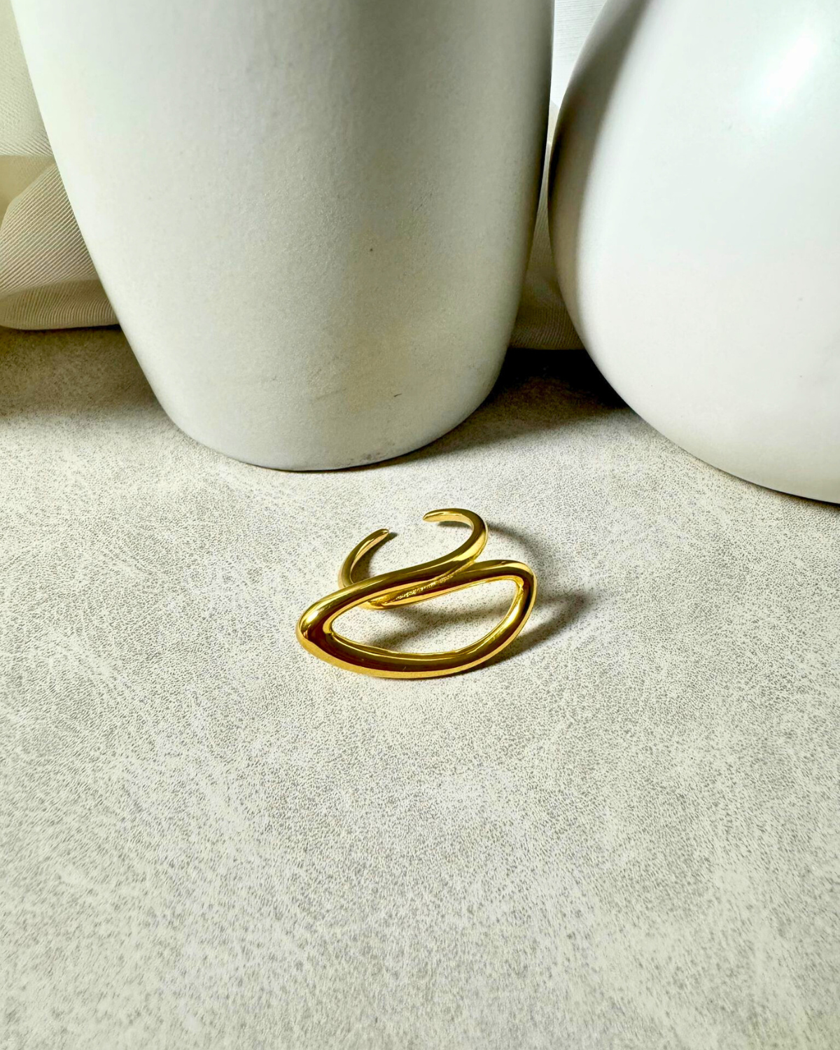 Tanay überzeugt mit seinem geschwungenen, offenen Design, das Modernität und Leichtigkeit vereint. Aus hochwertigem Edelstahl gefertigt und vergoldet, setzt er ein elegantes Statement mit minimalistischem Flair. Verstellbar und angenehm zu tragen – ein besonderer Hingucker für jeden Tag.