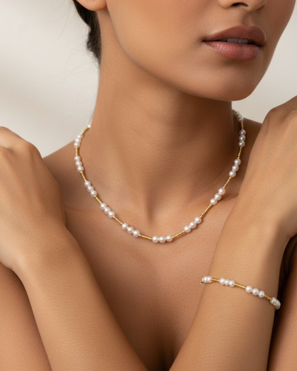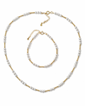 Brum verbindet zeitlose Eleganz mit feiner Leichtigkeit. Das zarte Zusammenspiel aus schimmernden Perlen und goldfarbenen Akzenten verleiht Armband und Kette eine edle, moderne Ausstrahlung. Gefertigt aus hochwertigem 925er Silber, ist das Set Brum der perfekte Begleiter für jeden Tag – dezent, stilvoll und vielseitig kombinierbar.
