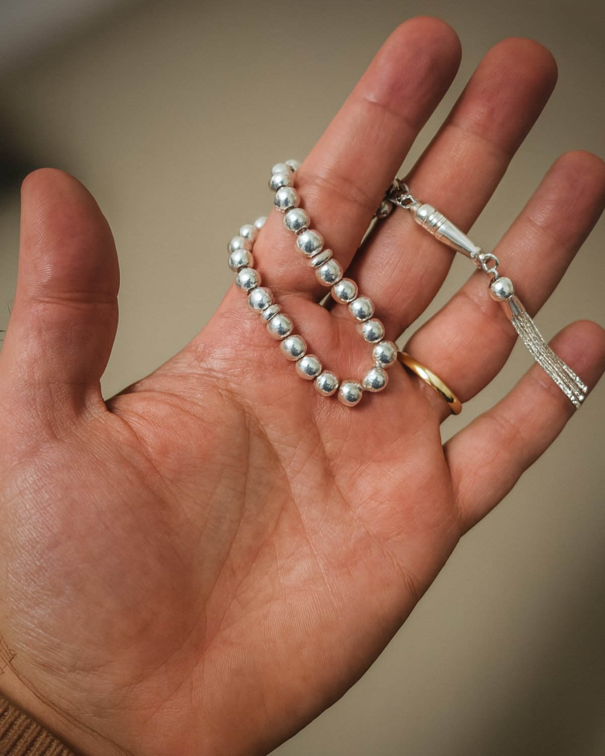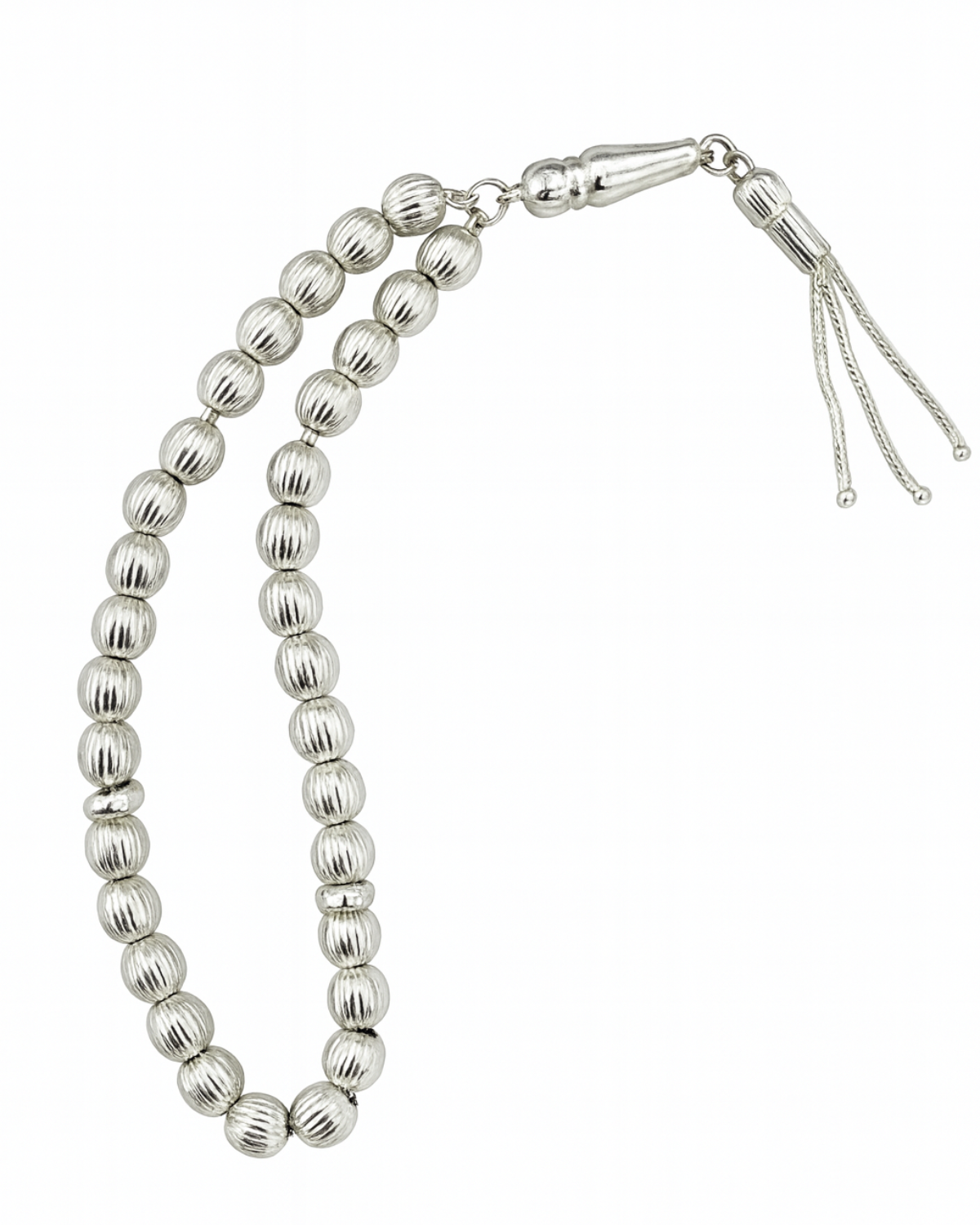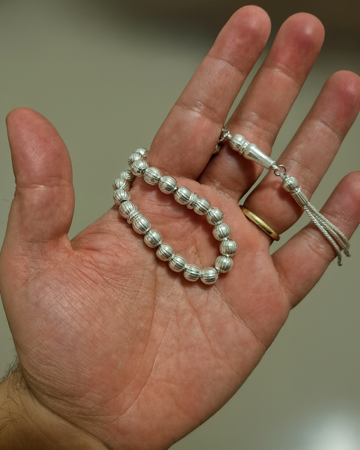 Der Tesbih Hünkar vereint zeitlose Eleganz und hochwertige Verarbeitung. Erhältlich in zwei stilvollen Varianten – mit gerillten oder glatt polierten Silberperlen (2 Perlengrößen) – bietet er für jeden Geschmack das passende Design. Beide Modelle überzeugen durch ihren maskulinen Look, ihren angenehmen Griff und ihren edlen Silberglanz. Perfekt als stilvolles Accessoire, Geschenk oder Begleiter für ruhige, meditative Momente.